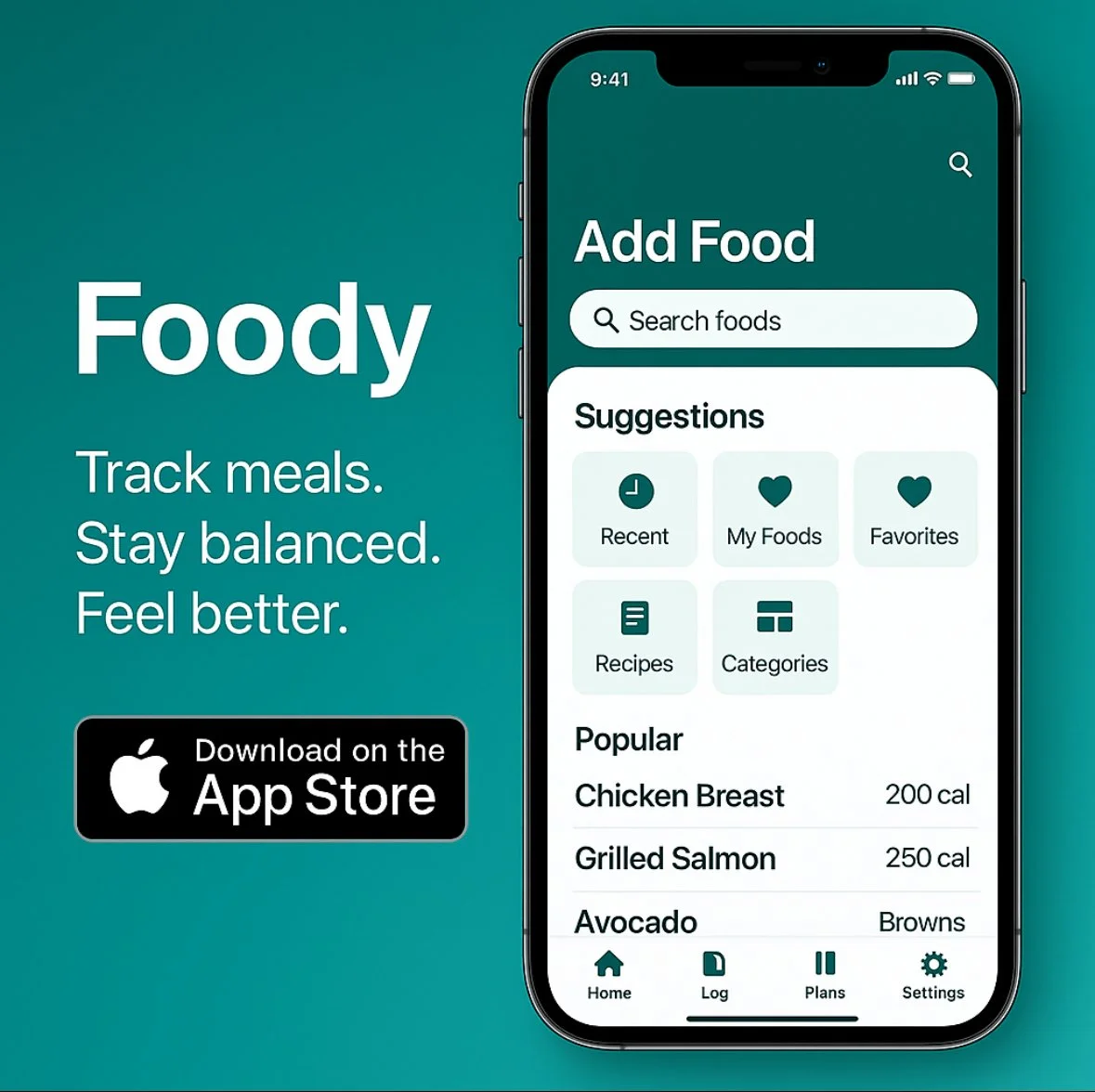 Foody is a native mobile app designed to help users track their daily food intake, set nutritional goals, and integrate with fitness devices.