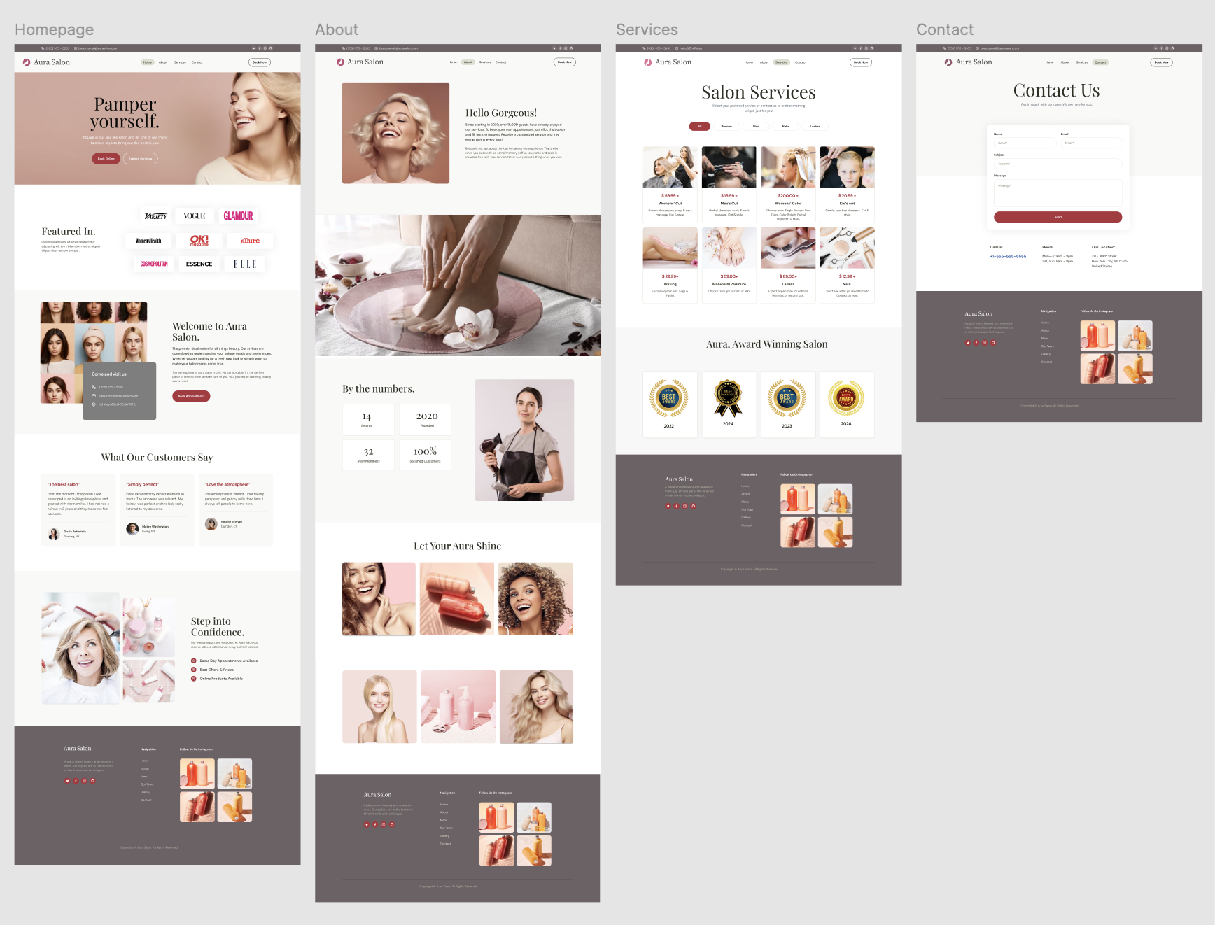 The Aura Salon project focused on redesigning the salon’s website for better usability, clearer navigation, and an enhanced booking experience. Key features include a streamlined booking flow, modernized aesthetics, and mobile responsiveness. The redesign resulted in improved user engagement and a 30% increase in appointments.